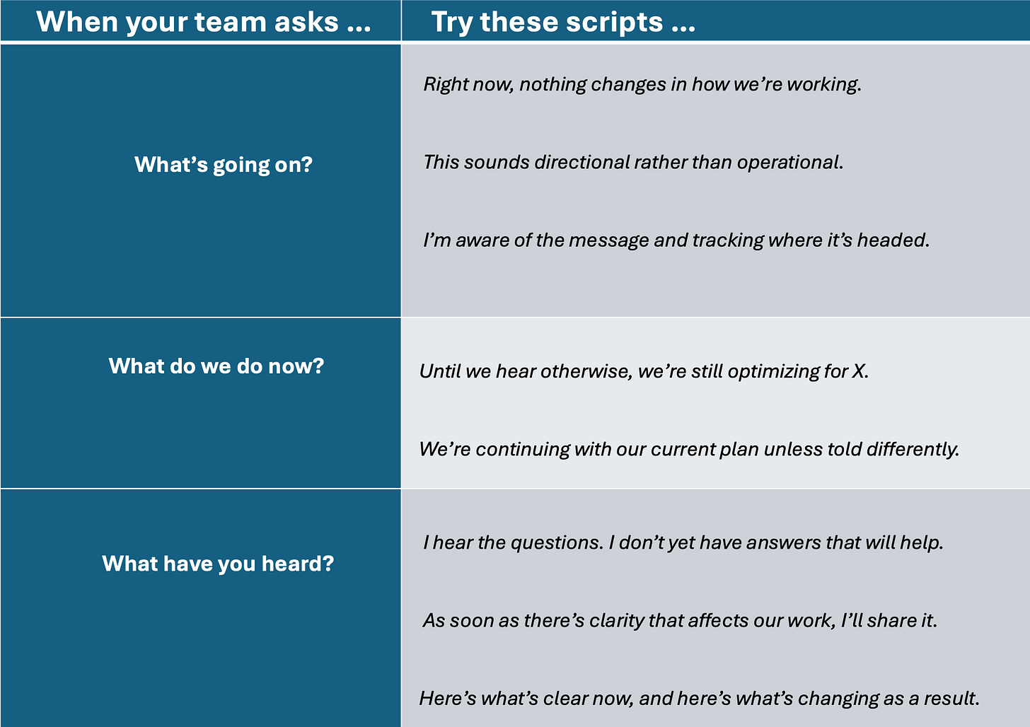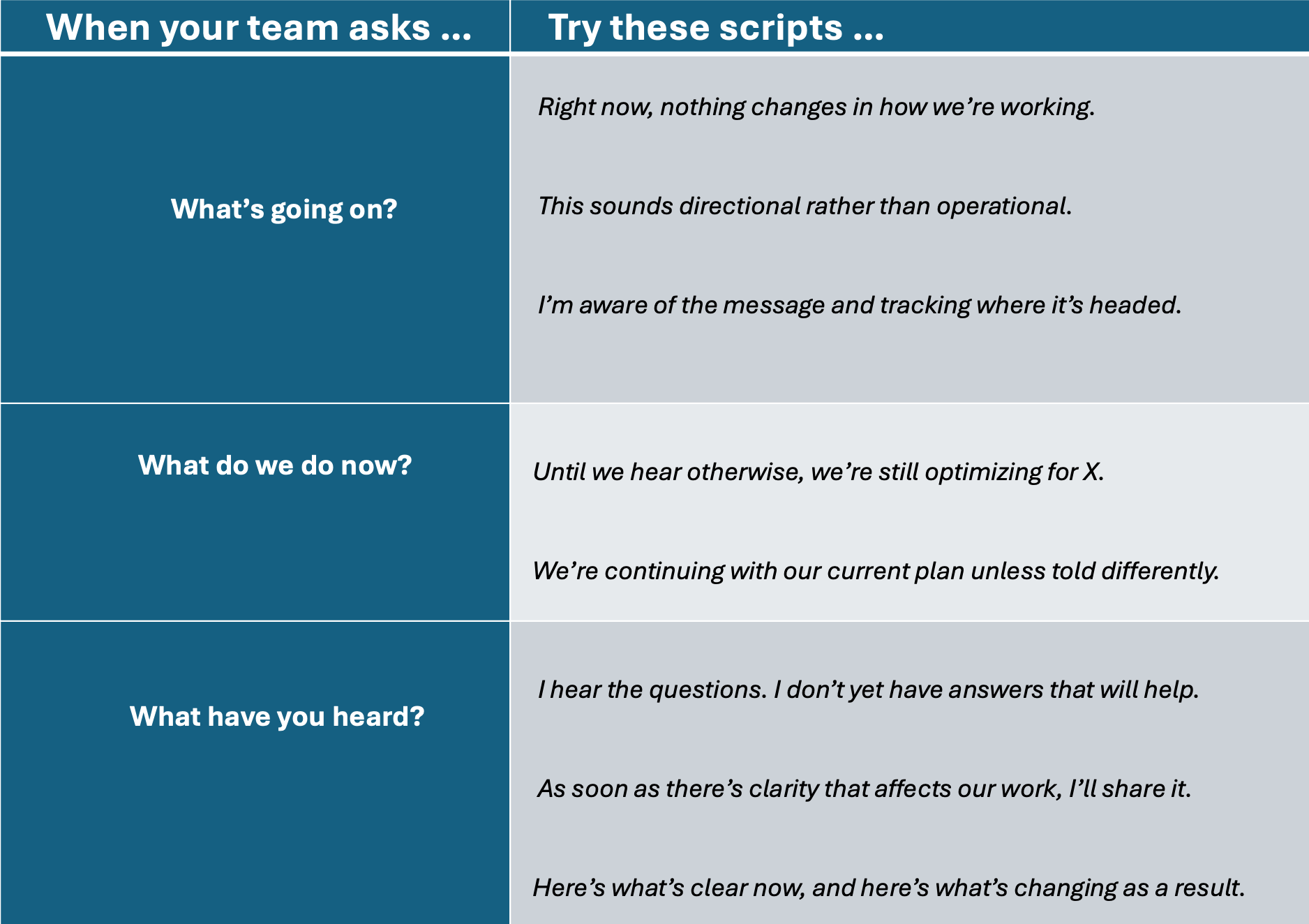 There’s a big difference between what makes you feel a little less anxious and what equips your team to align with a new policy direction from on high.
